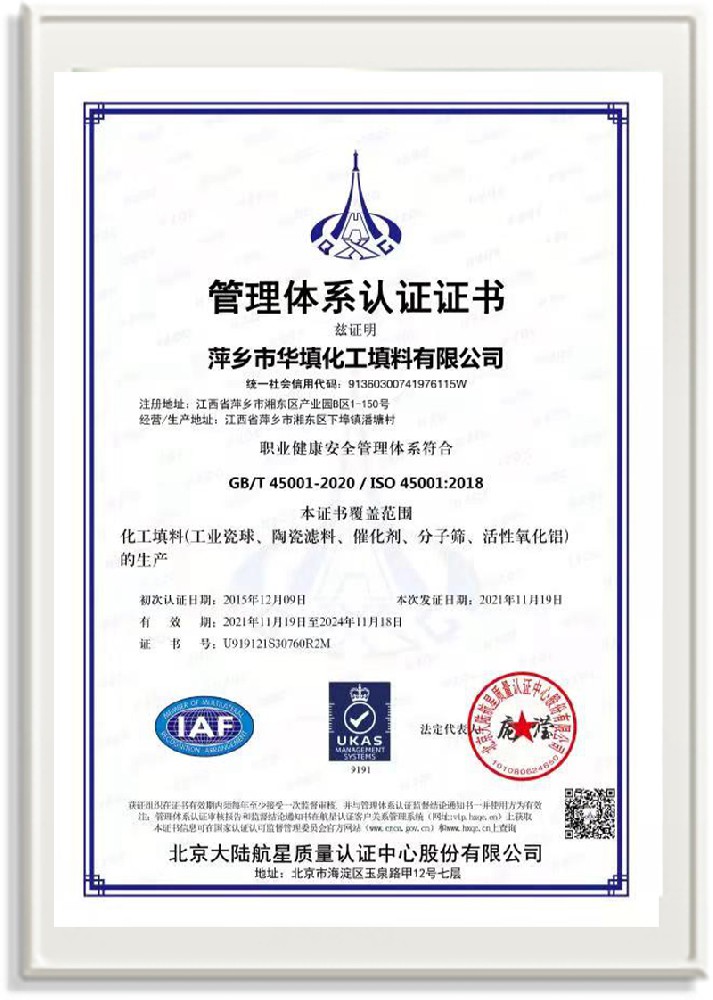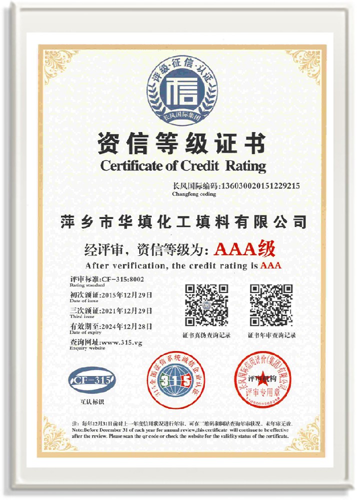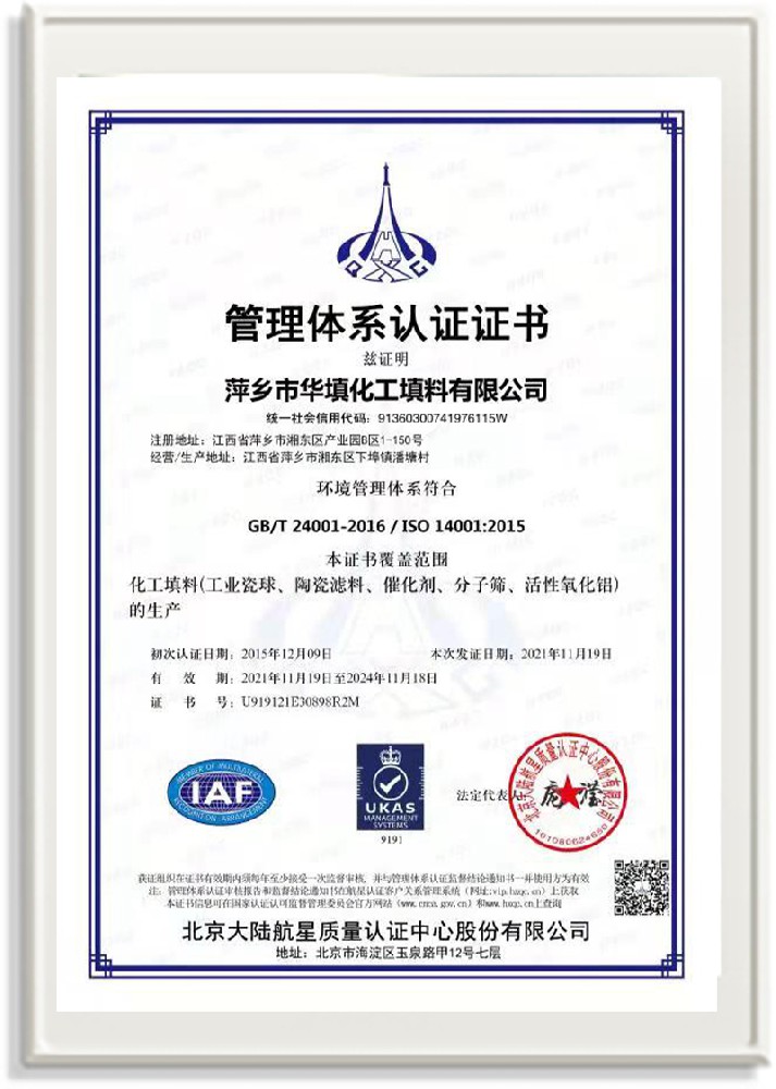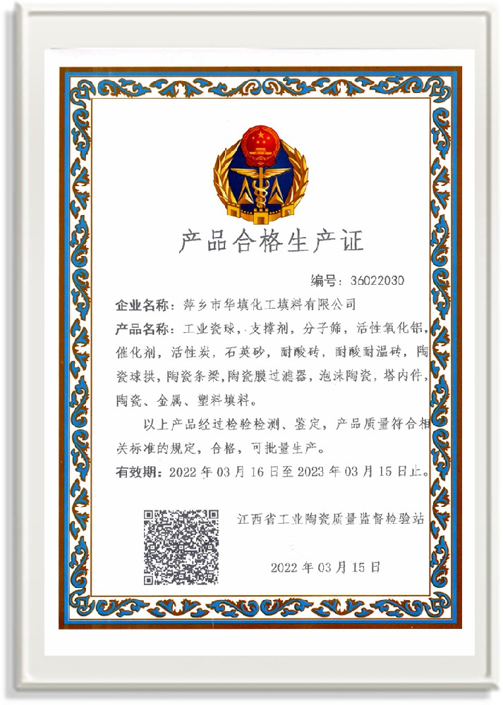 萍鄉(xiāng)市華填化工填料有限公司,位于320國道、109國道、浙贛鐵路、昌金高速公路貫穿其中,交通便利,是江西西部一顆燦爛明珠,創(chuàng)建于20世紀70年代初期,是中國石油天然氣股份有限公司“能源一號網(wǎng)”會員企業(yè)、中國石化物資采購電子商務網(wǎng)絡和中國海洋石油總公司采辦業(yè)務系統(tǒng)成員單位,是上海大學江西材料基因組工程產(chǎn)業(yè)研究院工業(yè)陶瓷產(chǎn)業(yè)創(chuàng)新聯(lián)盟基地,且通過ISO9001:2015質(zhì)量管理體系、ISO14001:2015環(huán)境管理體系、ISO45001:2018職業(yè)健康安全管理體系認證的化工填料生產(chǎn)企業(yè)。公司擁有陶瓷、塑料、金屬填料、催化劑、活性氧化鋁、分子篩等產(chǎn)品生產(chǎn)線,現(xiàn)有固定資產(chǎn)3616萬元,占地面積3.8萬平方米。公司具有悠久的生產(chǎn)歷史、雄厚的技術(shù)力量和先進的生產(chǎn)工藝設備,可生產(chǎn)工業(yè)瓷球(支撐劑)、陶瓷、金屬、塑料質(zhì)的規(guī)整、散堆化工填料及分子篩、催化劑、生化濾料、活性氧化鋁、石化助劑、活性炭、環(huán)保材料、耐火材料等系列的200多種規(guī)格型號產(chǎn)品。